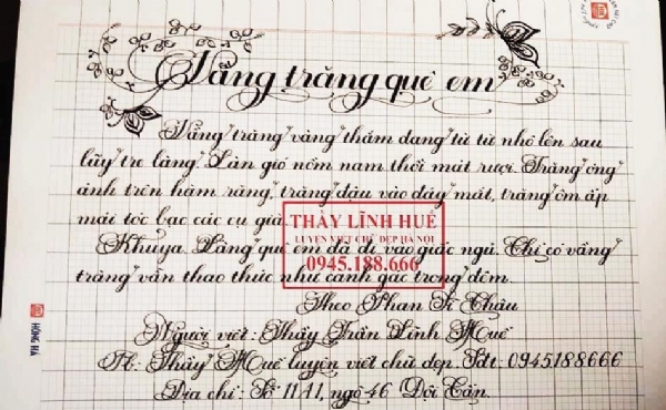 Thầy LĨNH HUẾ luyện viết chữ đẹp HÀ NỘI 0945188666